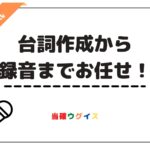 【台詞の作成&吹込み】 3万円(税込33000円) | 5本の台詞作成&5本の録音データ(mp3,wavなど) 24h以内に原稿を作成し、吹き込み完了! |